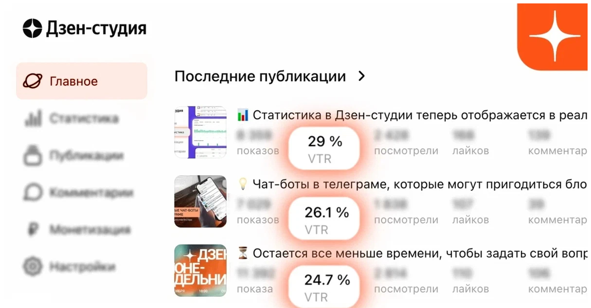 В Дзене VTR (View-Through Rate, оценка сквозного просмотра) — это метрика, показывающая процент пользователей, которые досмотрели видео или проявили интерес к посту до конца от общего числа показов, что помогает понять вовлеченность аудитории, особенно для видео, где кликнуть не всегда обязательно. Этот показатель заменил CTR (Click-Through Rate, кликабельность) для видео, так как в Дзене контент может просматриваться прямо в ленте, а не только после клика. Что означает VTR: • Высокий VTR: говорит о том, что ваш видеоконтент или пост интересен и удерживает внимание людей. • Формула: (Количество досмотров / Количество показов) * 100%. Зачем он нужен: • Оценка вовлеченности: Показывает, насколько хорошо контент «цепляет» зрителя. • Понимание эффективности: Помогает оценить качество креатива и эффективность площадки. • Объективность: Дает более реалистичную картину, чем CTR, так как учитывает просмотры внутри ленты. Пример: Если ваш ролик показали 1000 раз, а 500 человек досмотрел