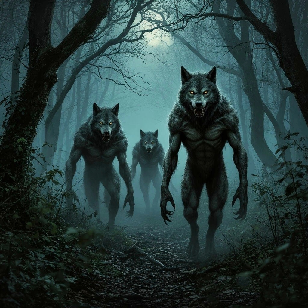А тем временем, из травы поднялись ещё три существа. Глаза их светились, отражая свет фонарей, пасти были плотно сомкнуты, они принюхивались. Двое отделились, и стали медленно расходиться в разные стороны- Виктор понял, что его пытаются окружить.