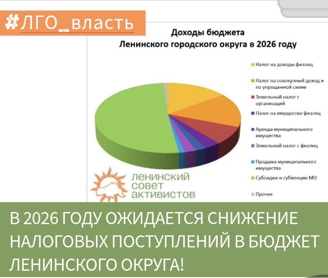 В 2026 ГОДУ ОЖИДАЕТСЯ СНИЖЕНИЕ НАЛОГОВЫХ ПОСТУПЛЕНИЙ В БЮДЖЕТ ЛЕНИНСКОГО ОКРУГА!