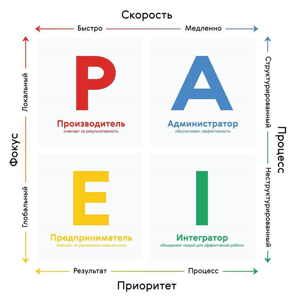 Психолог-практик — это не только специалист, но и управленец собственного дела. Здесь на помощь приходит модель Ицхака Адизеса о четырех ключевых функциях менеджмента (PAEI), которые применимы к любому проекту, в том числе и к вашему профессиональному пути.
