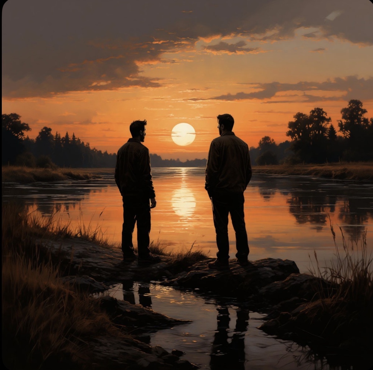 Повесть начинается сценой у реки, где сразу задаётся тон всей истории. Джордж и Ленни — противоположности. Один умён и резок, другой добр и опасно неосознан. Ленни любит гладить всё мягкое, не понимая, что может навредить. Из-за этого они вынуждены постоянно менять работу.
