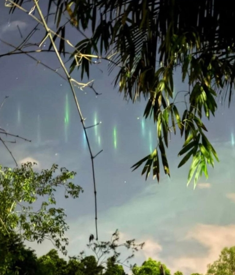 Вчера вечером, 12 декабря, жители северного Пхукета (район Тамапхрау, мыс Сай) стали свидетелями волшебного зрелища! В небе появились яркие вертикальные световые колонны, устремляющиеся ввысь! Это редкое оптическое явление – "Световые столбы"! Эти "магические лучи" возникают благодаря кристаллам льда высоко в атмосфере, которые отражают свет от источников на земле, создавая эффект гигантских световых колонн.