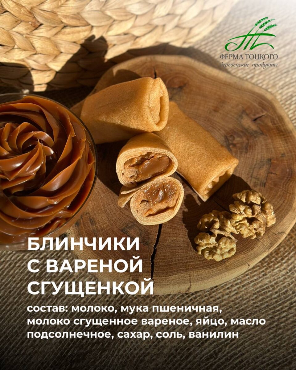 Доброе субботнее утро❤️ Выходные - отличный повод побаловать себя и своих близких! Как на счет ароматных блинчиков с начинкой? 🥞 С магазинах Фермы Тоцкого вас ждет разнообразие готовых блинчиков - выбирайте любимую начинку и наслаждайтесь вкусом без усилий на приготовление! Будем рады видеть Вас в наших магазинах: ✔️ ТЦ "Космос-Сити", пр. Строителей, 45а ✔️ ЖК "Фаворит" ул. Мира, 44а ✔️Магазин «Гидростроевский», ул. Экспериментальная, 7 ✔️ ТЦ "Семейный", ул. Антонова, 18В