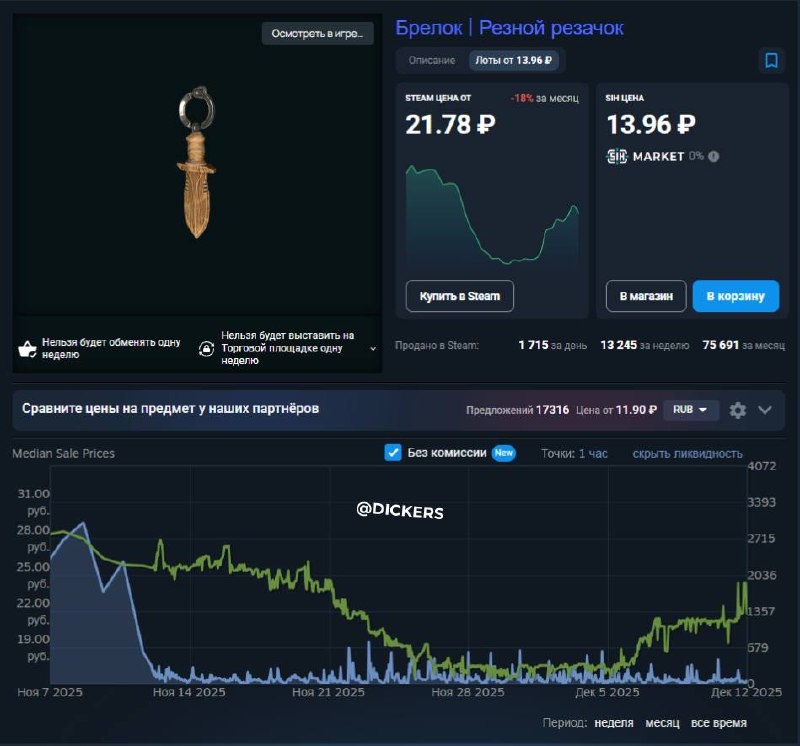 Разбираем самые перспективные брелки из коллекции «Малый калибр» с конкретными ценами, прогнозами и обоснованием. Реальные инвестиционные рекомендации от практика. Продолжаем тему брелков из коллекции «Малый калибр». Топ брелков, которые я считаю наиболее перспективными к росту: 1. Брелок | Резной резачок Актуальная цена: 21.78₽
