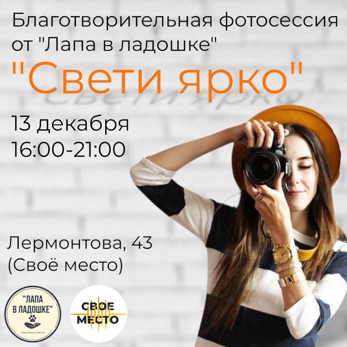 Друзья 🌺 Сегодня у нас запланирована фотосессия "Свети ярко". Она очень актуальна для вас перед приближающимся праздником, и для нас - в связи с большими задолженностями в клиниках и расходами ⚡ Осталось 2 свободных окошка - на 16 и 17:30 ч 📂 Если вы хотите поддержать наш фонд, то успевайте записаться в Telegram у Валерии ✅ 🗂️ В программу фотосессии входит: ✨ Яркий акцентный макияж от профессионального визажиста 🫦 ✨ Портретная фотосессия. Длительность 1,5-2 часа/человек (с учётом макияжа). На руки вы получите 20 (+) обработанных фотографий. ✨ Все средства, собранные в ходе фотосессии, будут направлены на погашение долгов перед клиниками за лечение наших подопечных. До Нового года остаётся всё меньше времени - и нам важно набрать средства, чтобы решить вопрос с задолженностями. ✨ Дата и время: 13 декабря с 16:00 до 21:00 ✨ Локация: Своё место, ул. Лермонтова, 43 ✨ Цена: 4000₽ И помните, быть добрым проще, чем кажется! #лапавладошке #благотворительные_мероприятия_lapa_vladoshke