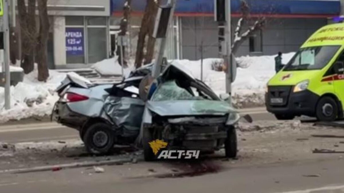 Иномарка влетела в столб на Вокзальной магистрали в Новосибирске