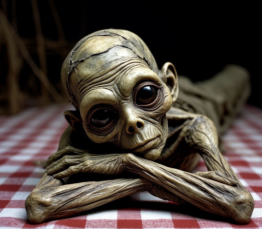 Самый вероятный сценарий, холодный и беспощадный: Кто-то из местных жителей (возможно, молодая девушка) тайно родила нежизнеспособного, сильно деформированного ребёнка. От страха, стыда или шока избавилась от тела, выбросив его. Его нашла психически нездоровая женщина, чьё больное сознание дорисовало историю о «живом пришельце». А необычная внешность плода, усиленная разложением и кустарной мумификацией, сделала всё остальное.