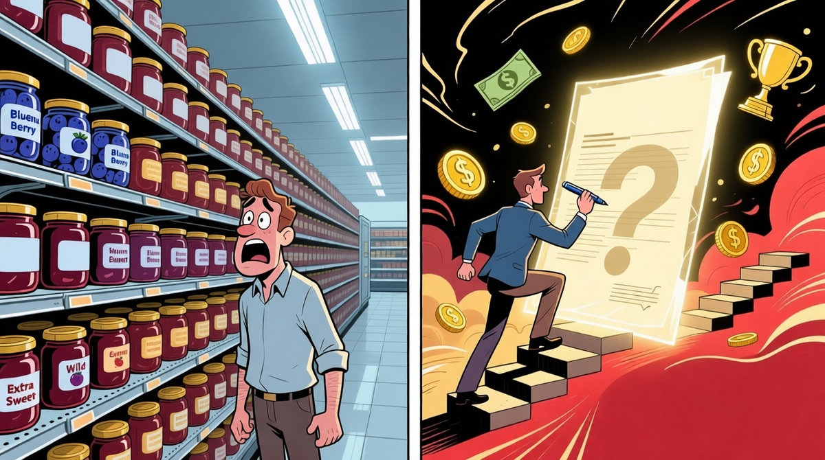 Стоя перед полкой с джемами, вы можете провести 15 минут в мучительных раздумьях. Но выбирая школу для ребенка или работу мечты, некоторые люди принимают решение за пару часов, полагаясь на сомнительные критерии. Парадокс выбора в том, что как при избытке вариантов, так и при их недостатке мы часто ошибаемся.