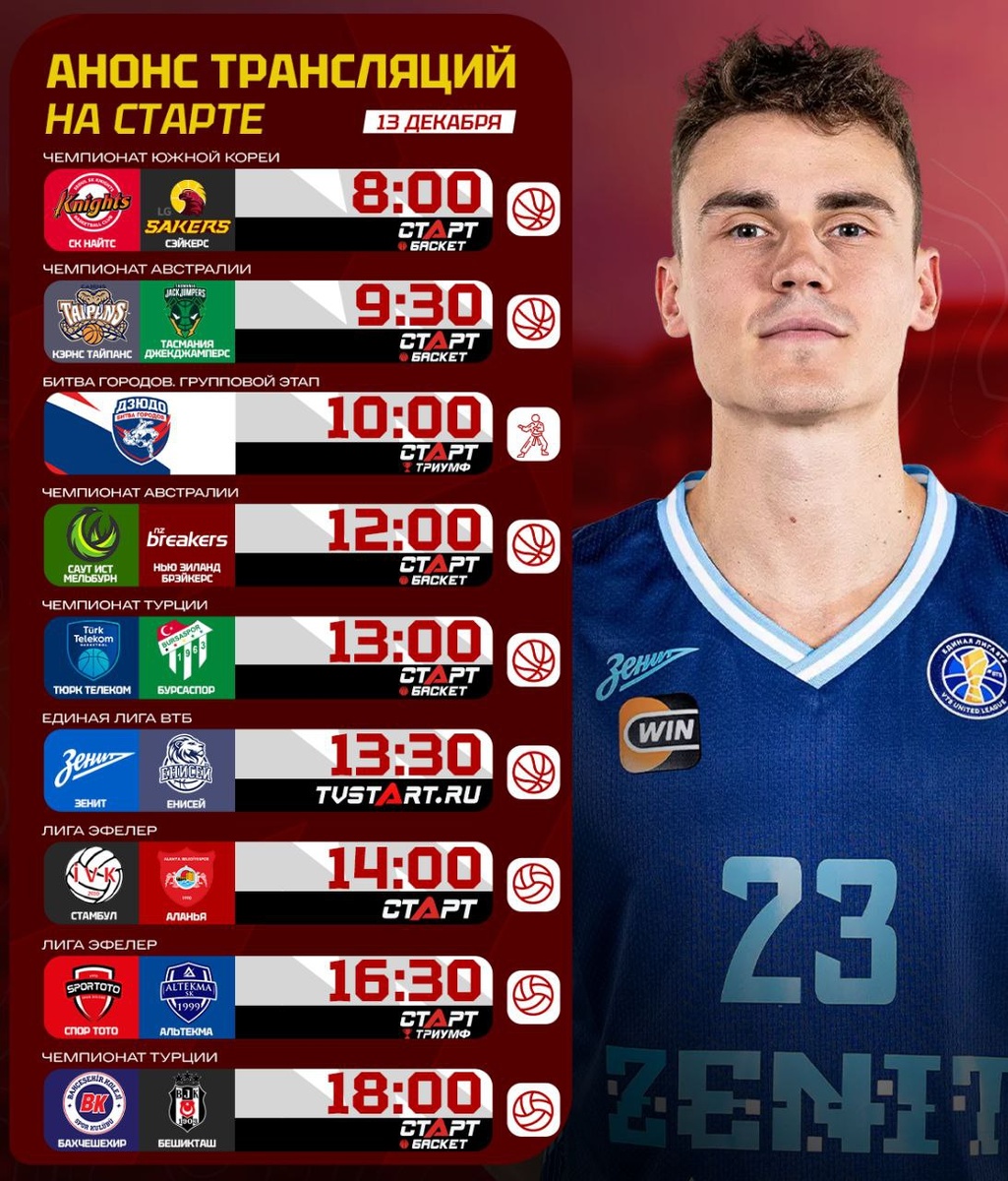 πΊπΏ Π‘ΡΠ±Π±ΠΎΡΠ° Π½Π° TVSTART.RU! Π Π°Π·Π³ΠΎΠ½ΡΠ΅ΠΌΡΡ ΠΊΠΎΡΠ΅ΠΉΡΠΊΠΈΠΌ ΠΈ Π°Π²ΡΡΡΠ°Π»ΠΈΠΉΡΠΊΠΈΠΌ Π±Π°ΡΠΊΠ΅ΡΠ±ΠΎΠ»ΠΎΠΌ, Π° ΡΠ°ΠΊΠΆΠ΅ Π΄Π·ΡΠ΄ΠΎ ΠΈΠ· Π‘ΠΈΡΠΈΡΡΠ°. ΠΠ°Π»Π΅Π΅ Β«ΠΠ΅Π½ΠΈΡΒ» ΠΏΡΠΈΠΌΠ΅Ρ Β«ΠΠ½ΠΈΡΠ΅ΠΉΒ». Π Π²ΠΎΠ»Π΅ΠΉΠ±ΠΎΠ»Π΅ Π½Π°Ρ ΠΆΠ΄Π΅Ρ ΡΠΎΠΏ-ΠΌΠ°ΡΡ Π² ΠΠΈΠ³Π΅ ΠΡΠ΅Π»Π΅Ρ β Β«ΠΠΈΡΠ°Π°ΡΒ» ΠΏΡΠΎΡΠΈΠ² Β«Π₯Π°Π»ΠΊΠ±Π°Π½ΠΊΠ°Β». ΠΠ΅ΡΠ΅ΡΠΎΠΌ ΠΈΠ· Π±Π°ΡΠΊΠ΅ΡΠ±ΠΎΠ»Π° ΠΈΠ³ΡΡ Β«Π£Π½ΠΈΠΊΠ°Ρ