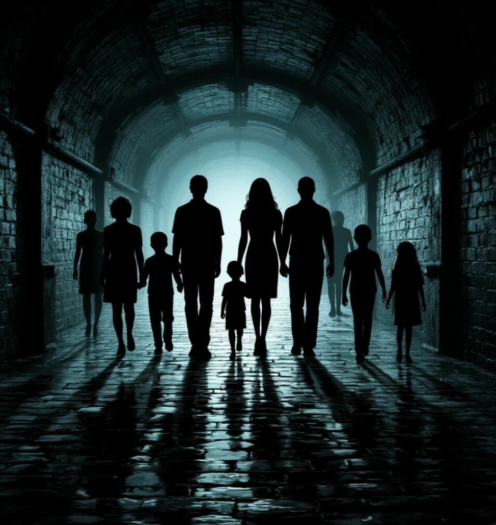 Они шли уже несколько часов, ориентируясь по едва заметным отметинам на стенах — стрелкам, оставленным, возможно, такими же беглецами, или просто следам вандализма. Воздух был густым от пыли и пах сыростью, металлом и чем-то химическим, напоминавшим старое лекарство. «Дядя Лео, а куда мы идём?» — тихо спросила Майя, и её голос эхом разнёсся по пустоте.