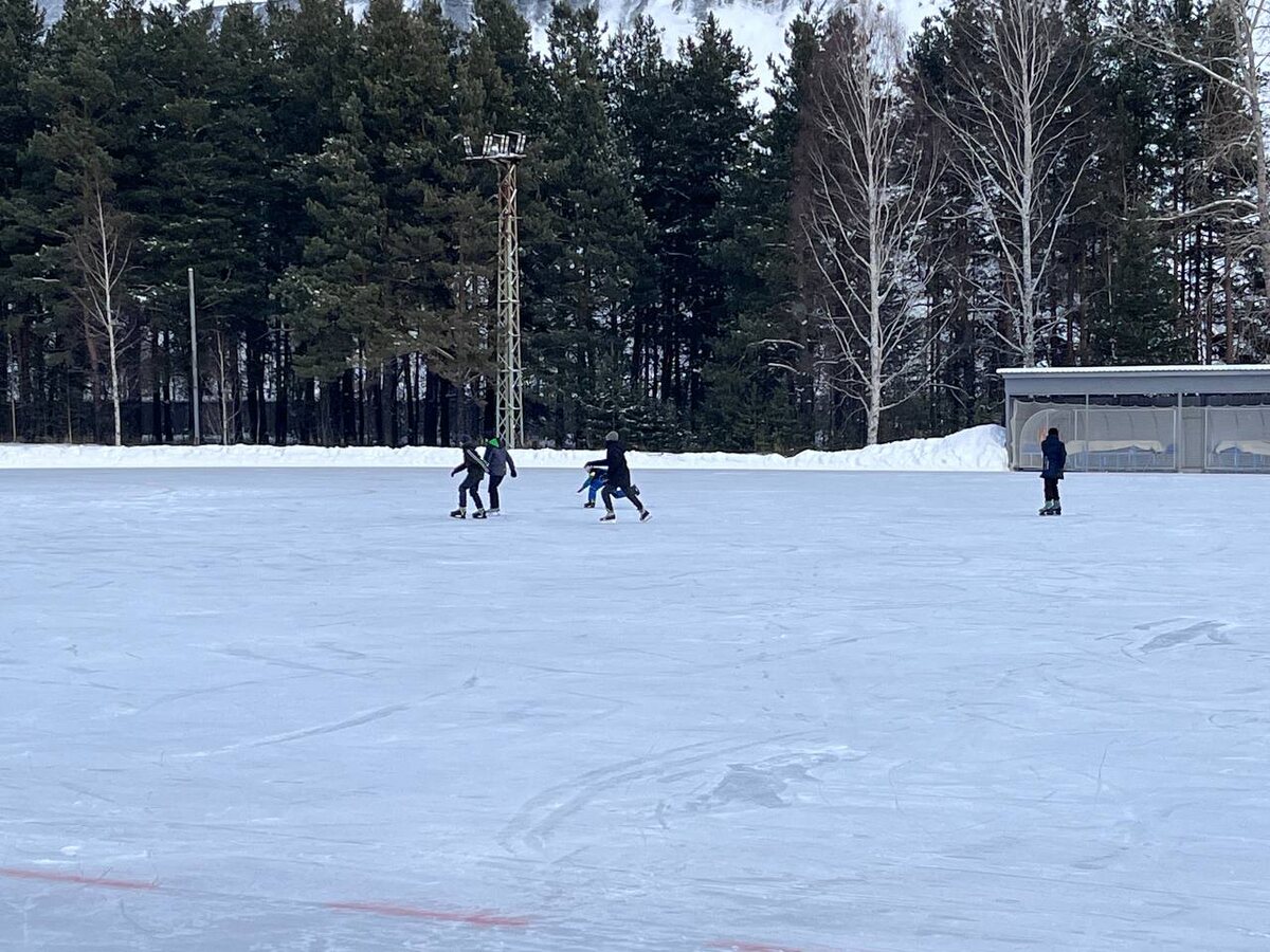 Каток на городском стадионе начал работу. Сегодня он работает до 21 часа. Вход в манеж - 50 рублей. Прокат взрослый -150 рублей.