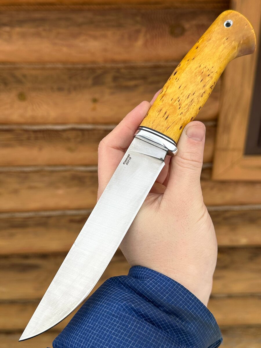 ! Ищете надёжный нож для работы, туризма или охоты? *Встречайте проверенную классику!* ⠀ ✨ Ключевые преимущества: - *Сталь 95х18 — отечественная нержавейка*: отлично держит заточку, прочная на излом, не боится влаги и коррозии. - *Рукоять из капа клена жёлтого* — эффектно смотрится, надёжно лежит в руке. - *Режет, как бритва*: нож уже профессионально заточен. - *Твёрдость клинка* — 58 HRC. ⠀ 🔥 Цена: 7 740 рублей В комплекте — ножны из натуральной кожи. Хочется больше? Сделаем: - *Формованные ножны* +8 000 ₽ - *Ножны из кайдекса* +3 000 ₽ ⠀ 🟢 *Отправляем по всей России.* ⠀ 📩 Для заказа — пишите: @Nazarklinokbot или WhatsApp/Viber: +7 910 134-38-31