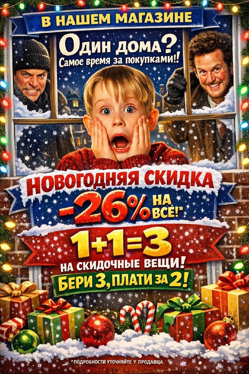 , НАПОМИНАЕМ! 🎄 НОВОГОДНИЕ АКЦИИ 🔥 АКЦИЯ №1 –26% НА ВСЁ!* ✔ честная скидка от реальных цен ✔ действует при оплате наличными 🎁 АКЦИЯ №2 1 + 1 = 3 на скидочные вещи 👉 бери 3 — плати за 2 🔒 УСЛОВИЯ • акция закрытая — для подписчиков Telegram • пароль: 2026 • акции не суммируются 📅 СРОКИ ПРОВЕДЕНИЯ 25.12.25 — 06.01.26 G-SHINE Мужская одежда