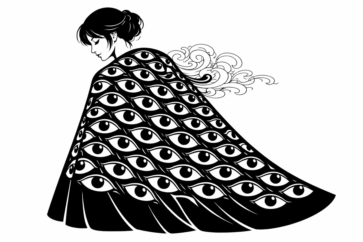 Но у Девушки была тайна. На её плечах лежал тяжёлый плащ. Он был сшит не из ткани, а из взглядов. Взглядов, которые когда-то сказали: не так, нельзя, стыдно, ты подвела. Плащ прилегал к коже так плотно, что Девушка иногда забывала: он не её.