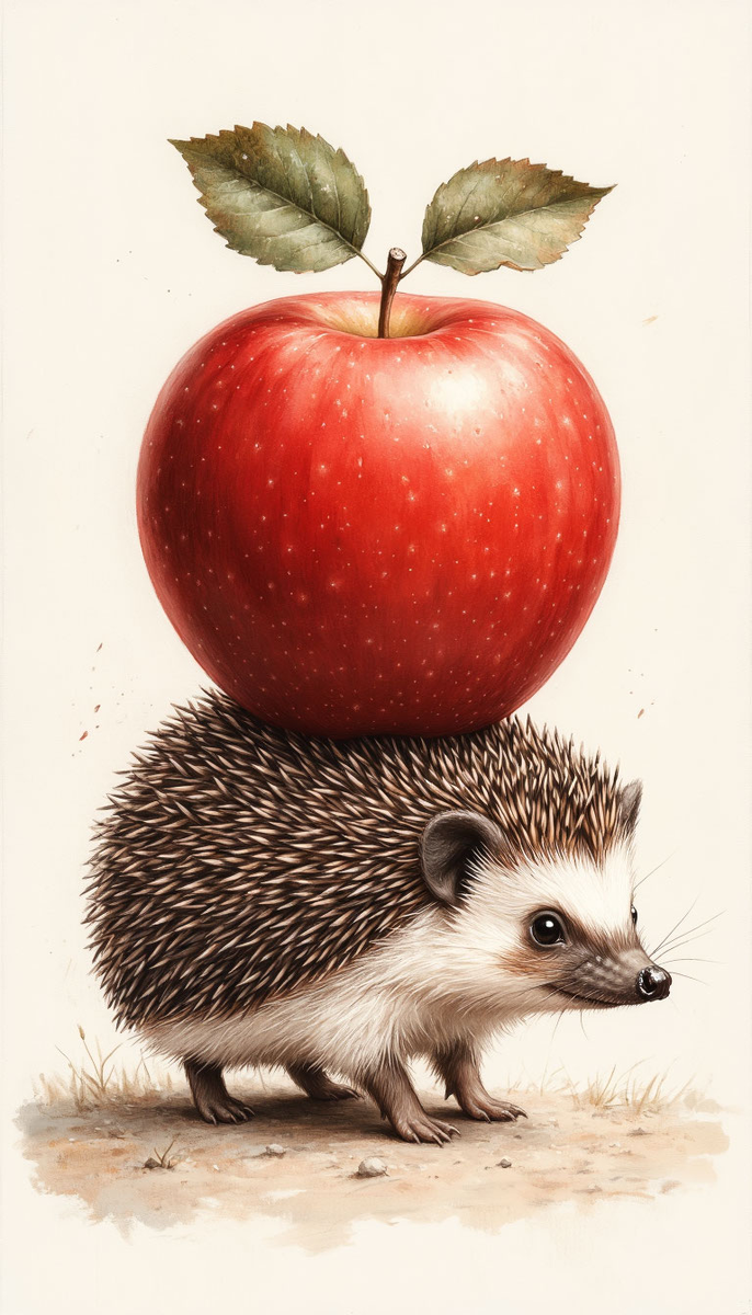 Теперь, засыпая под мягкое сопение Зои, он иногда касался лапкой своих иголок. Они больше не гнулись под тяжестью чужих грибов. Они стояли ровно, остро и гордо, как частокол, охраняющий его маленькое, настоящее, честно завоёванное счастье. А в углу норки, рядом со входом, лежало высохшее, уже сморщенное зелёное яблоко. Он его не ел. Оно было важнее еды. Оно было вещественным доказательством чуда — того, что ты можешь быть любим просто за то, что ты есть.