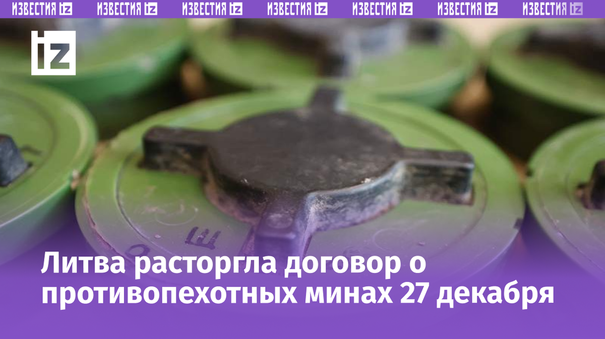 Литва официально вышла из Оттавской конвенции о запрете противопехотных мин. Об этом 27 декабря написал портал LRT. «В субботу Литва официально вышла из Оттавской конвенции, запрещающей использование, накопление и производство противопехотных мин. Прошло ровно шесть месяцев с тех пор, как Литва официально проинформировала Генерального секретаря ООН о выходе из Оттавской конвенции», — говорится в материале. В марте 2025 года министры обороны Литвы, Латвии, Эстонии и Польши выпустили совместное заявление о намерении выйти из Оттавского договора. Позднее парламенты стран проголосовали за выход из соглашения. До этого, 24 апреля, официальный представитель МИД России Мария Захарова связала заявления стран Прибалтики о выходе из Оттавской конвенции с выгодами для НАТО. По ее словам, эти государства нацелены на развитие взаимодействия с производителями противопехотных мин из США.