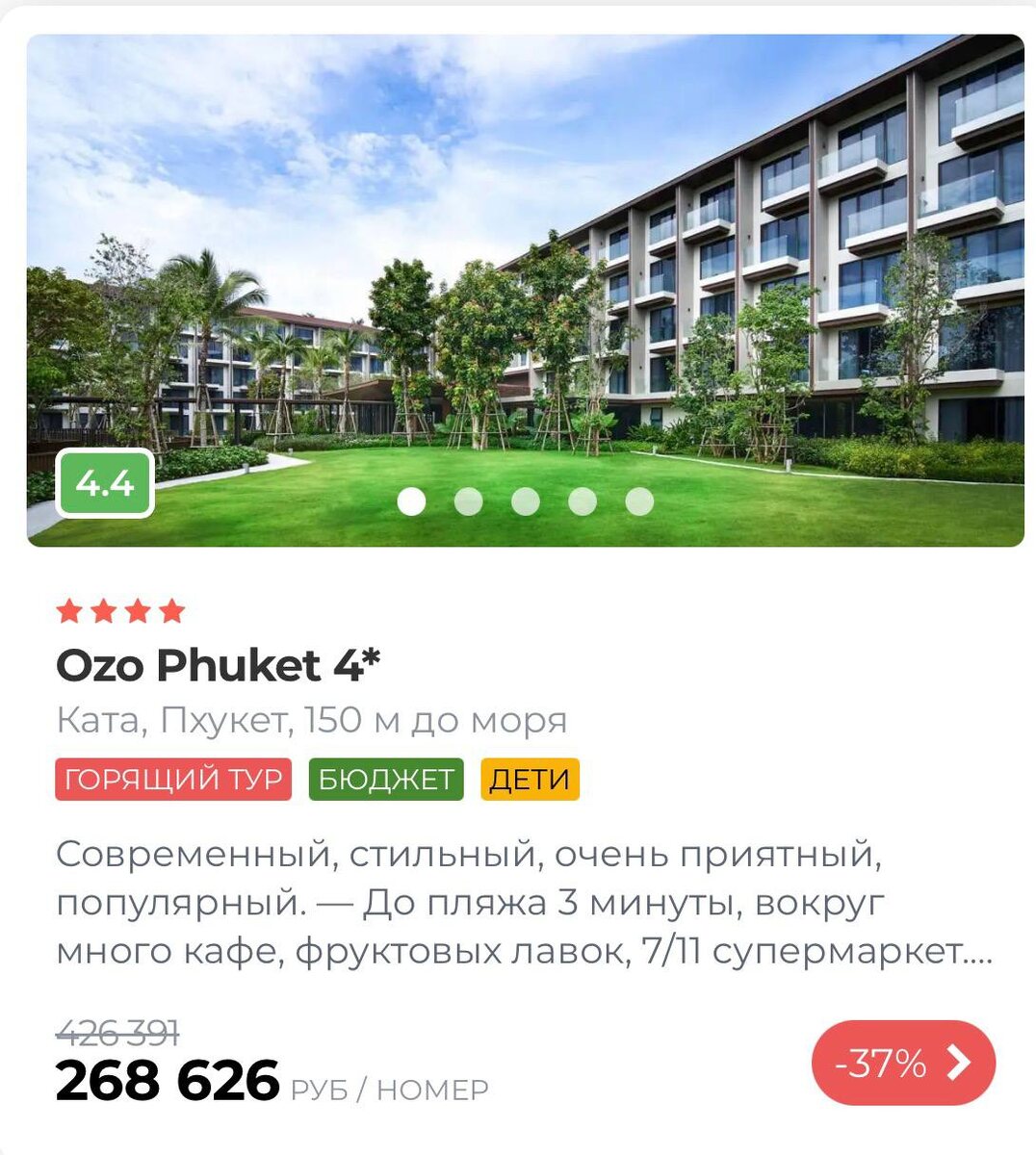 Друзья, один из популярных качественных отелей выложил спецпредложение после январских праздников. С учетом того, что мест в отелях ни где нет, это супер вариант отдыха. Современный, стильный, очень приятный, популярный. До пляжа 3 минуты, вокруг много кафе, фруктовых лавок, 7/11 супермаркет. Локация одна из лучших. Есть детская зона с горкой, кино под открытым небом, уютная территория. Очень вкусные завтраки, свежие номера, но небольшие, хорошая уборка. 🌴 Ozo Phuket 4* ✈️ С.Петербург прямой Аэрофлот с 14.01 до 21.01 на 7 ночей На завтраках 🍽 2 взрослых 🔥 268 626 RUB / 426 391 RUB 🍽 2 взрослых + 1 ребенок 🔥 355 505 RUB / 564 295 RUB 🍽 2 взрослых + 2 ребенка 🔥 574 392 RUB / 911 734 RUB Двухкомнатный номер Бронировать Подробнее здесь Отзывы о нас #Таиланд #OzoPhuket