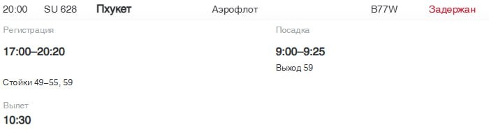 Рейс «Аэрофлота» из Пулково на Пхукет задерживается на 14 с половиной часов