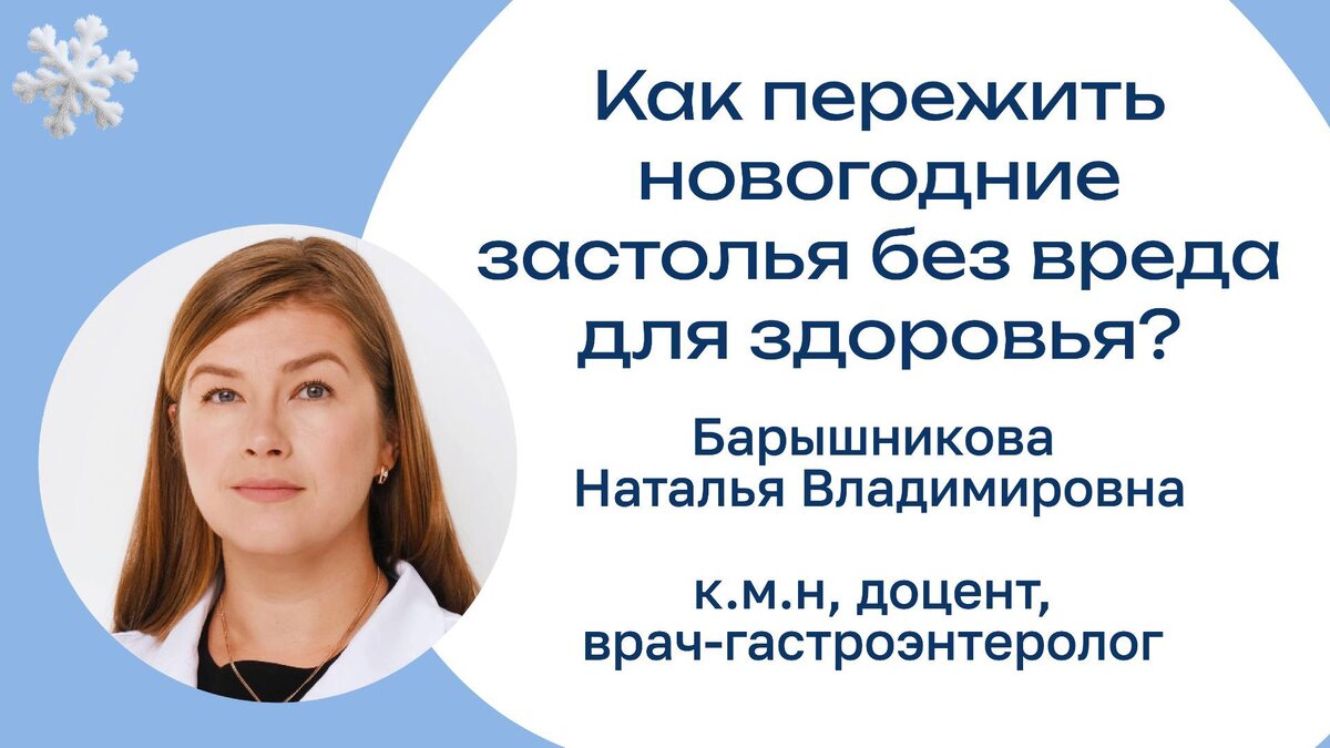 Советы гастроэнтеролога 🥗 🎁Праздники — не повод для проблем со здоровьем. В новом видео Наталья Владимировна Барышникова, к.м.н., доцент, врач-гастроэнтеролог, рассказывает, как пережить новогодние застолья без перегрузки для организма. 📱В выпуске: • как избежать переедания • безопасные сроки хранения праздничных блюд • допустимые нормы алкоголя • что такое осознанное питание • почему важно учитывать индивидуальные пищевые триггеры Смотрите видео и встречайте праздники с комфортом и заботой о своём здоровье ✨ 🔗Смотреть видео: 📹YouTube ▶️ RuTube 💬ВКонтакте 🌐Дзен #интервью@gastroserv