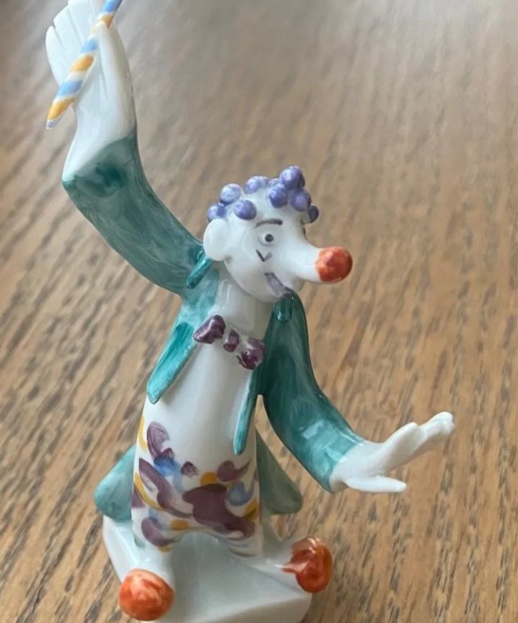 На одной фотографии клоун: он несерьезный. К тому же чем меньше фарфоровая фигурка, тем она больше ценится (например, пальцы на маленькой руке непросто создавать). На другой мои книги.