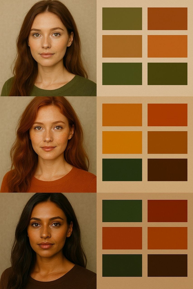 Вы когда‑нибудь замечали, что одни цвета делают вас сияющей, а другие — словно «гасят» внешность? Всё дело в цветотипе — природной гамме, которая идеально сочетается с вашим тоном кожи, цветом волос и глаз. Сегодня поговорим о самом тёплом и сочном из них — осеннем цветотипе. Представьте себе пейзаж в золотую пору: янтарные листья, рыжие гроздья рябины, медовые оттенки увядающей травы. Именно такая тёплая, насыщенная палитра присуща представительницам цветотипа «Осень». Ключевые признаки: В рамках осеннего цветотипа выделяют три подтипа — каждый со своей уникальной палитрой и нюансами. Это деликатная, приглушённая версия осенних тонов. Характерные черты: Идеальная палитра: мягкие, приглушённые тёплые тона: Чего избегать: резких контрастов и холодных оттенков (например, ярко‑розового или ледяного голубого). Самый «огненный» подтип — воплощение осенней яркости. Характерные черты: Идеальная палитра: насыщенные, глубокие цвета: Секрет стиля: делайте акцент на глубине и теплоте оттенков — о