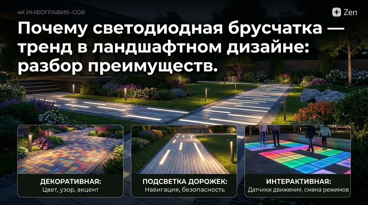 Почему светодиодная брусчатка — тренд в ландшафтном дизайне: разбор преимуществ
