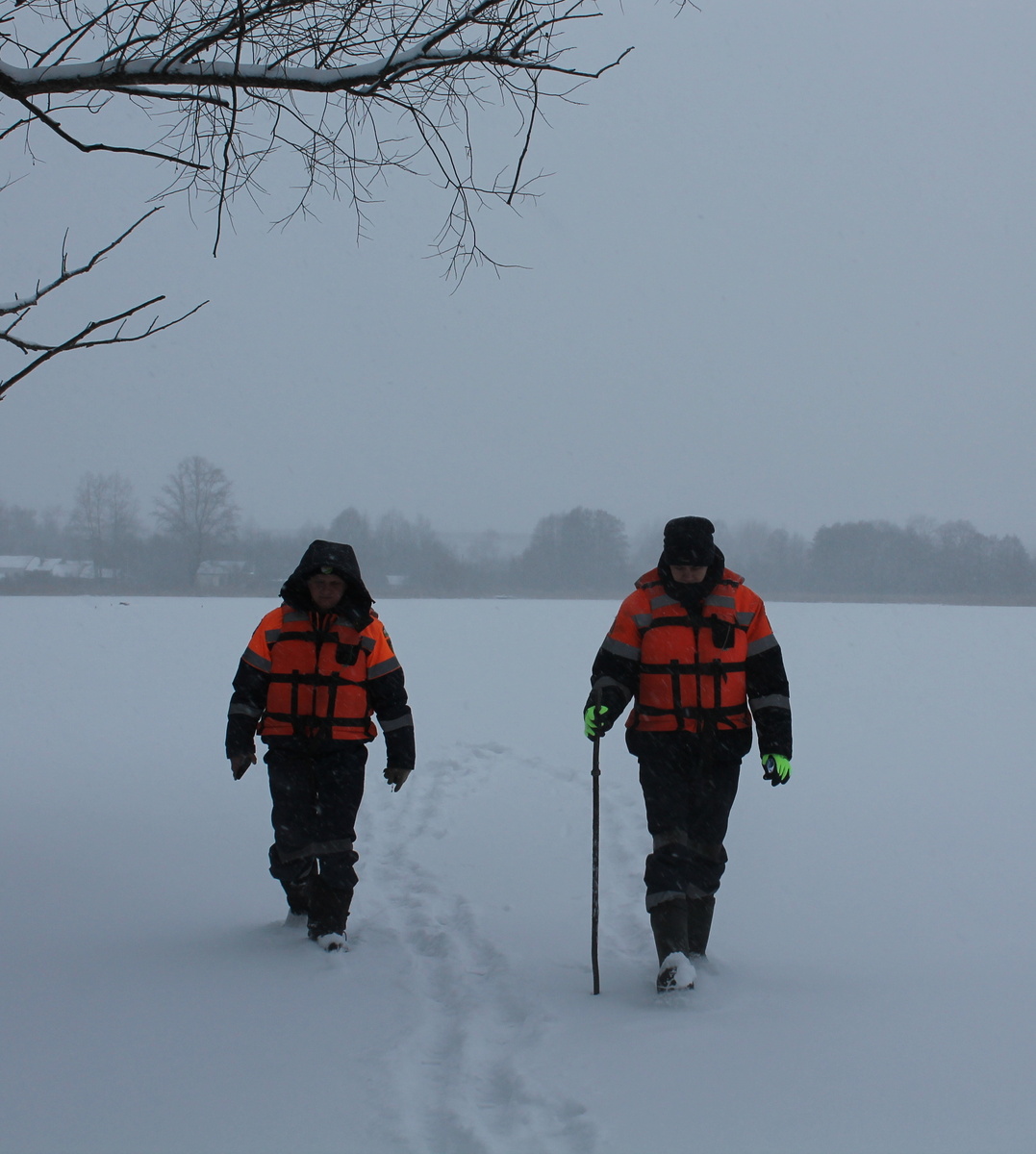 А мы – свой. Вскоре бригада добралась до Шоттовского пруда в Ермолаево. Как я и предполагала, ни одного рыбака на водоёме мы не обнаружили. Спасатели провели стандартную процедуру замера толщины ледового покрытия и заключили: лёд встал.