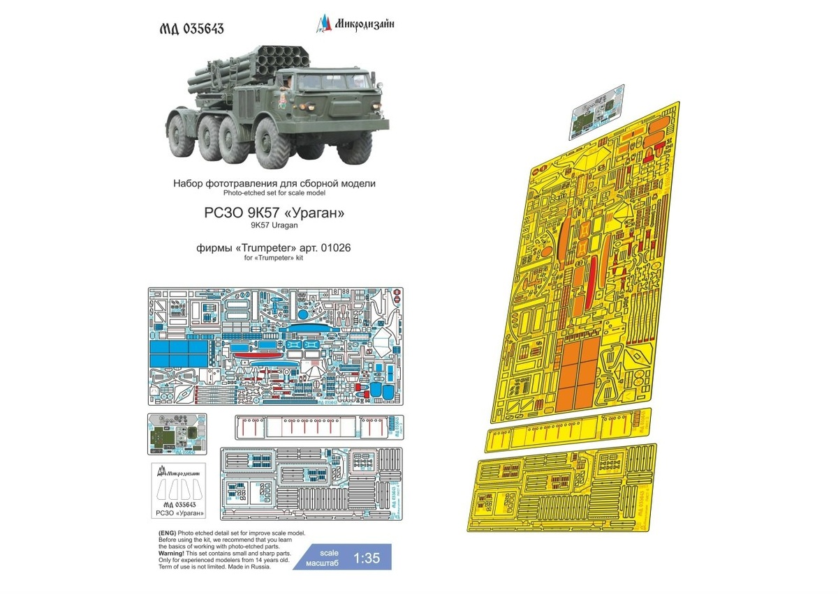 Севастопольская "Микродизайн" выпустила фототравление для деталировки модели РСЗО 9К57 "Ураган" в масштабе 1/35 от Trumpeter: