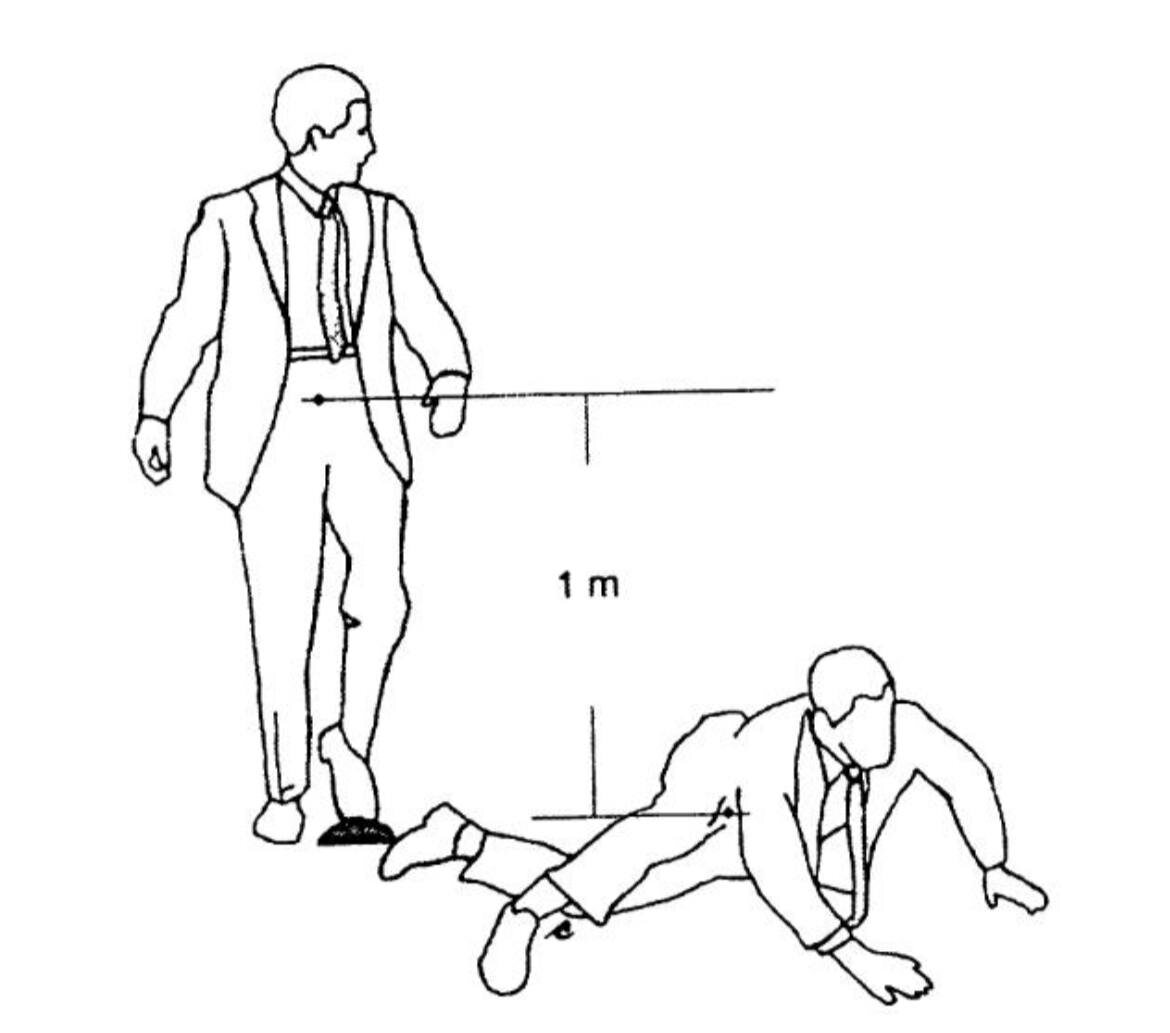 ? Принцип может быть продемонстрирован примером (см. Рис). Предположим, что человек весом 100 кг с центром массы на высоте 1 метра над землей падает на бедро, столкнувшись с препятствием. Если столкновение длится 0,1 секунды, земля действует на бедро с силой 4200 ньютона, которая достаточна для образования перелома.💥 Если столкновение длится одну секунду, сила действия земли составляет только 420 Ньютон, что приводит только к образованию синяка. То есть, чем жестче падение, тем вероятнее травма. Во время падения или прыжка человек может увеличить время до столкновения с опорой. Сила может быть уменьшена за счет сгибания ног в голеностопных, коленных или тазобедренных суставах или сворачивания тела в клубок. По данным Бенедека и Вилларса (1973) "Можно сломать кости голени или голеностопного сустава при прыжке даже с двухметровой высоты, если при этом прыжок совершен в неправильном положении при сокращенных мышцах и жестких суставах". Обычно увеличение времени столкновения