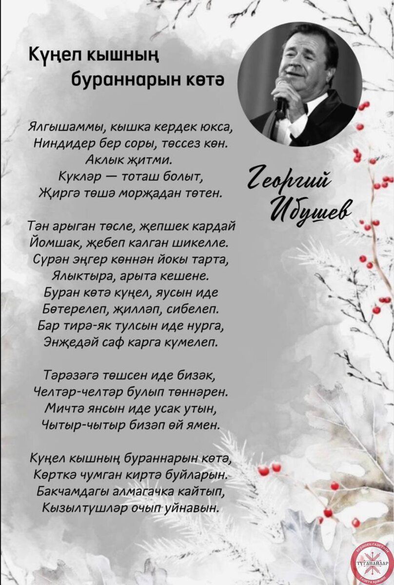 Россиянең атказанган, Татарстанның халык артисты Георгий Ибушевтан кышкы шигъри тәлгәшләр🪶