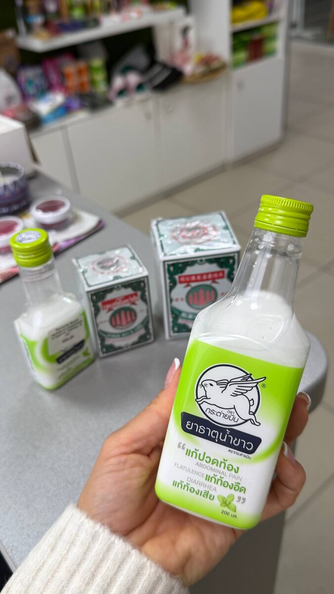 А вот ваш желудок — только начал бунтовать. 🤢 Вы съели всё: оливье, курицу, торт, сыр, шампанское, коньяк, пиво... И теперь ваш организм, как настоящий герой, пытается справиться с этим потоком. Но иногда ему нужна помощь. И вот она — ваша спасательная команда: --- 🐰 БЕЛЫЙ КРОЛИК (ยาธาตุน้ำขาว) — ваш личный "диспетчер" по устранению последствий Это не просто средство — это ваша страховка от "утра после". 🔸 Что лечит? Вздутие, боль в животе, диарею, тяжесть, тошноту — всё, что приходит после обильного застолья. 🔸 Почему именно он? Потому что работает быстро и мягко. Выпейте 1-2 столовые ложки — и через 15-20 минут вы снова сможете нормально дышать. 🔸 Когда принимать? УЖЕ СЕЙЧАС! Не ждите, пока станет совсем плохо. Если вы чувствуете дискомфорт — Белый Кролик поможет вам вернуться к жизни. --- 💊 Я ХОМ (ยาหอม ตรา 5 เจดีย์) — легендарный тайский порошок для "спасения после застолья" Да-да, это та самая зелёная коробочка с пятью башнями на этикетке — но это не эмульсия, а поро