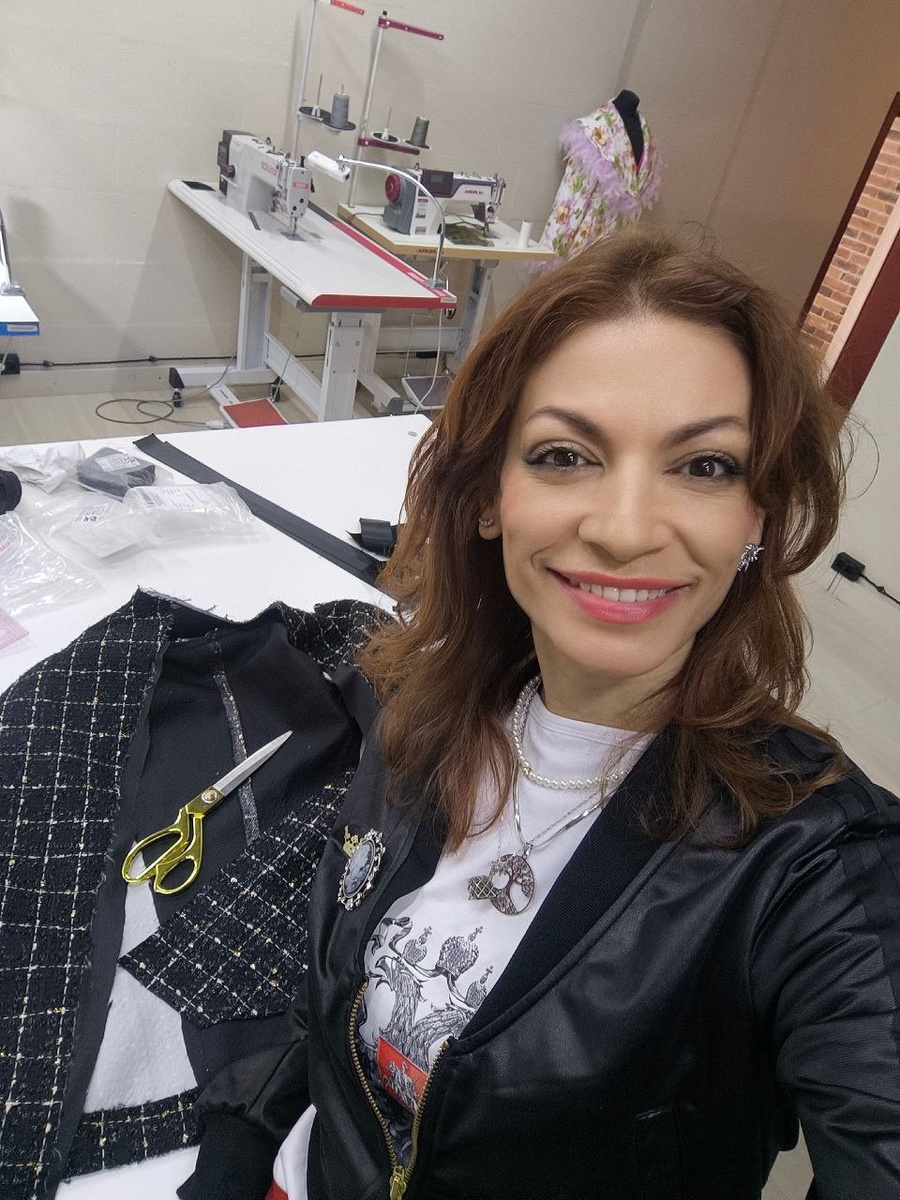 🔥🎯🔥. Даже успела проколоть палец иглой и которая сломалась 😅 и вытащила ее с обратной стороны с нитью. Очень активно смотрела и рукой поправляла клеточки, чтоб все совпадали. P.S Знаете ‼️ после показа этот жакет захотела модель забрать, уж очень ей он понравился. Но там были свои нюансы, его в прошлом году шил цех и наполовину отшитый вернули и сказали ))), понять и простить их 😆. Отдали лаборантке новой в итоге она собрала не соединив рисунок сзади и не продублировала спинку и в итоге все пошло не так и собран наполовину совсем не продублирован 😅, рукава не продублированы были и сшиты были. Я потом отнесла его в местное ателье в прошлом году и они мне сказали, вообще, чтоб я его выбросила ... я им ничего не сказала и забрала и пришла домой, и сама вручную на спинке сделала без лекал подкладочную ткань и решила, что будет для фотосессий, и показов и лежал так. И вот этот костюм участвовал в показе и девушке очень понравился и сказала хочу именно 💪😂 этот, просто доделайте