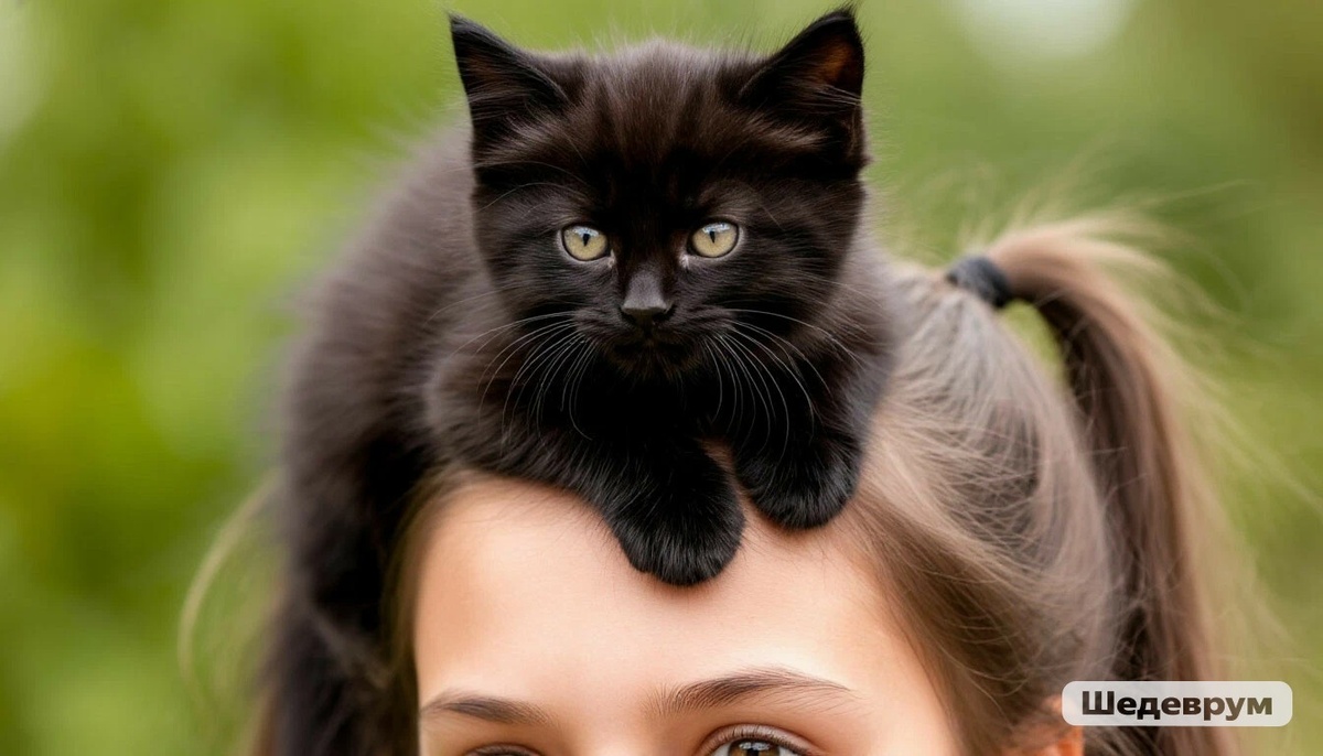 Несколько секунд черный, совершенно черный, пушистый котенок и девушка таращились друг на дружку.