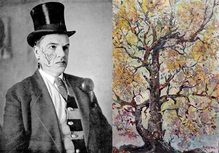 Он активно устраивал выставки и то, что в современном искусстве называется преформансами – абсурдные театрализованные представления. Он участвовал в создании множества поэтических сборников, занимался поэзией сам и поддерживал множество молодых поэтов – тому же Маяковскому помогал финансово, лишь бы тот имел возможность писать стихи. «Деточка, едем со мной!» - мог бросить он очередному голодному таланту, и тот отправлялся с ним в Чернянку на полное довольствие. Бурлюк эксцентрично одевался, рисовал на лице странные рисунки, а уж стеклянный глаз… И при этом он производил впечатление практичного, даже скучного обывателя, не стремился к роскоши, был хорошим семьянином.