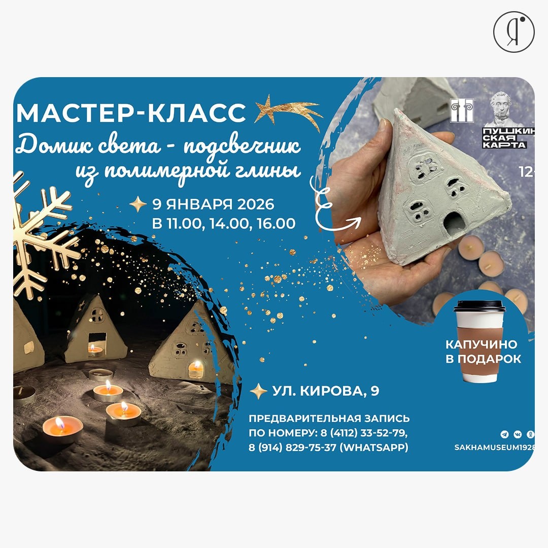 + #МК Участники в ходе занятия сотворят своими руками новогодний подсвечник в форме треугольного домика из полимерной глины, символизирующий уют, свет и спокойствие 9 января | 11:00 | 14:00 | 16:00 НХМ РС (Я), Кирова, 9 1400 руб. 8 (4112) 33-52-79, 8 (914) 829-75-37 Online Якутия | Ждем вас в МАХ