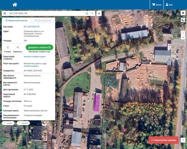Название: Земельный участок из земель населенных пунктов, расположенный по адресу: Псковская обл., г