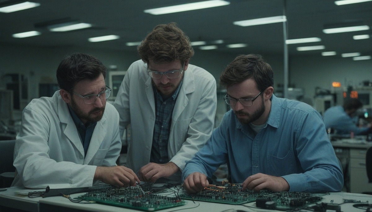 Ночь в лаборатории тянулась бесконечно. Запах паленой электроники смешивался с ароматом крепкого кофе, который литрами пил Александр, пытаясь оживить уставший мозг. Перед ним лежала схема сложного устройства, которую нужно было довести до ума к утру.