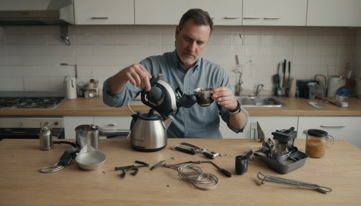 Василию было стыдно признаться, что он не может сам отремонтировать чайник. Он решил, что попробует ещё раз, прежде чем обращаться за помощью к специалистам.
