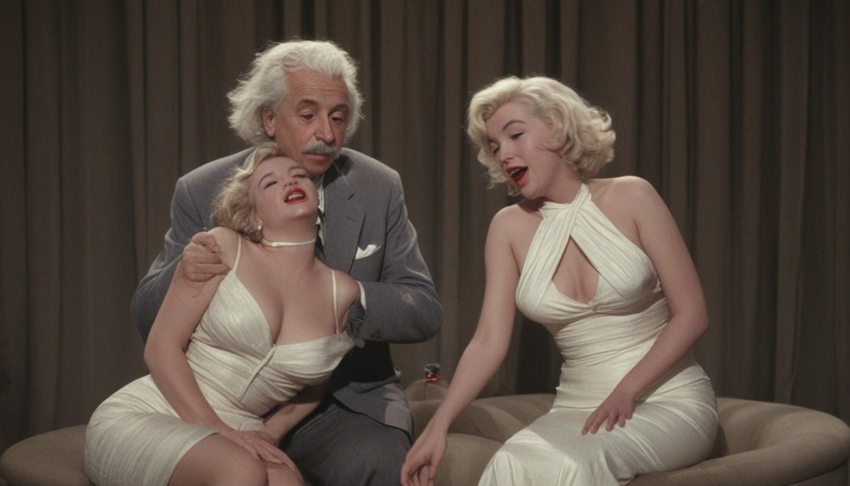 Она сидела напротив него, вся такая сияющая, в своем облегающем платье цвета слоновой кости. Свет софитов играл на ее светлых волосах, и казалось, что вокруг нее ореол. Он же, напротив, чувствовал себя неуклюжим и старым в своем помятом костюме. Но именно она, Мэрилин Монро, позвала его на эту встречу. Альберт Эйнштейн нервно поправил очки.