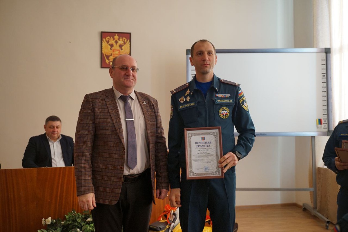 В преддверии Дня спасателя, который отмечается 27 декабря в России, в 19 ПСЧ г. Ессентуки состоялось награждение лучших сотрудников отрасли почетными грамотами и благодарственными письмами главы города Ессентуки Владимира Крутникова. Первый заместитель главы администрации Анатолий Иващенко по поручению главы отметил отличившихся спасателей, поблагодарил за неустанный труд и преданность службе. За достигнутые успехи и достижения в области гражданской обороны и по итогам 2025 года почетной грамотой награжден начальник отдела надзорной деятельности и профилактической работы ГУ МЧС России Евгений Чаплыгин, спасатель 3-го класса АСС МКУ «ГО и ЧС» Ахмед Эльжуркаев. За инициативу и старание, проявленные при выполнении мероприятий в области гражданской обороны, поощрены благодарственными письмами главы Ессентуков, начальник 19 ПСЧ Дмитрий Сидоркин, пожарный Андрей Пожидаев, Роман Попов, Николай Потемкин. Заместитель начальника ОНД и ПР Тимур Шугушев, старший дознаватель Заурбек Берозов