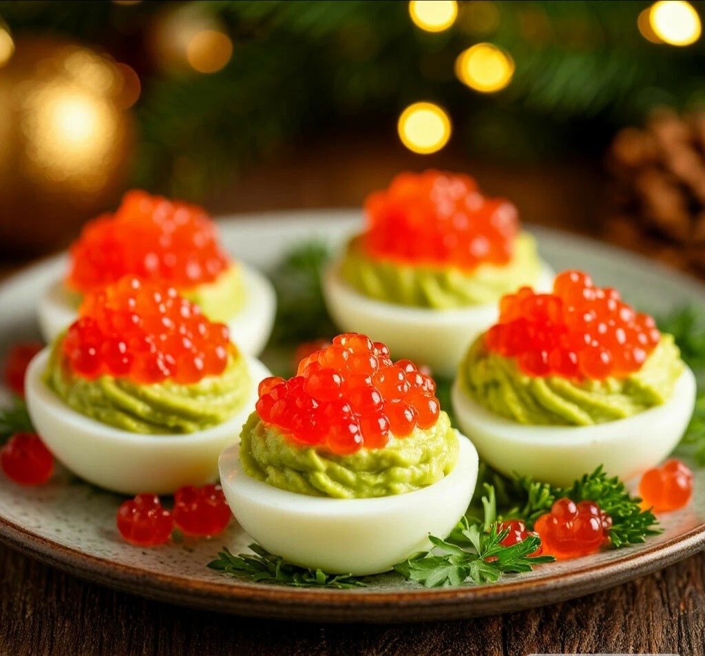 ЗАКУСКА-КОРОЛЕВА НОВОГОДНЕГО СТОЛА: ЯЙЦА, ФАРШИРОВАННЫЕ КРЕМОМ ИЗ АВОКАДО С ИКРОЙ
