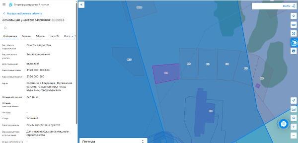 Название: Земельный участок с кадастровым номером 51:20:0001300:603, площадью 727 кв.м., категория земель – земли населенных пунктов