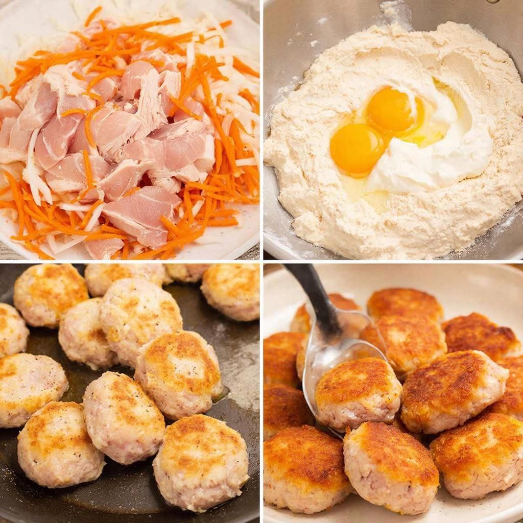 Простой рецепт идеального ужина для всей семьи! ### Ингредиенты: - Индейка (филе) — 1 кг - Лук репчатый — 1 шт. - Морковь — 1 шт. - Сметана (20%) — 2 ст.л. - Яйца — 2 шт. - Мука — 4-5 ст.л. - Соль, перец — по вкусу - Растительное масло — для жарки ### Готовим: 1. Мясо режем кубиками. 2. Овощи измельчаем и слегка обжариваем. 3. Смешиваем мясо, овощи, яйца, сметану, муку, соль и перец. 4. Котлеты формируем ложкой и обжариваем до румяности. Подавайте с любимым гарниром. Приятного аппетита! 😋 --- Подписывайтесь на мой кулинарный канал!