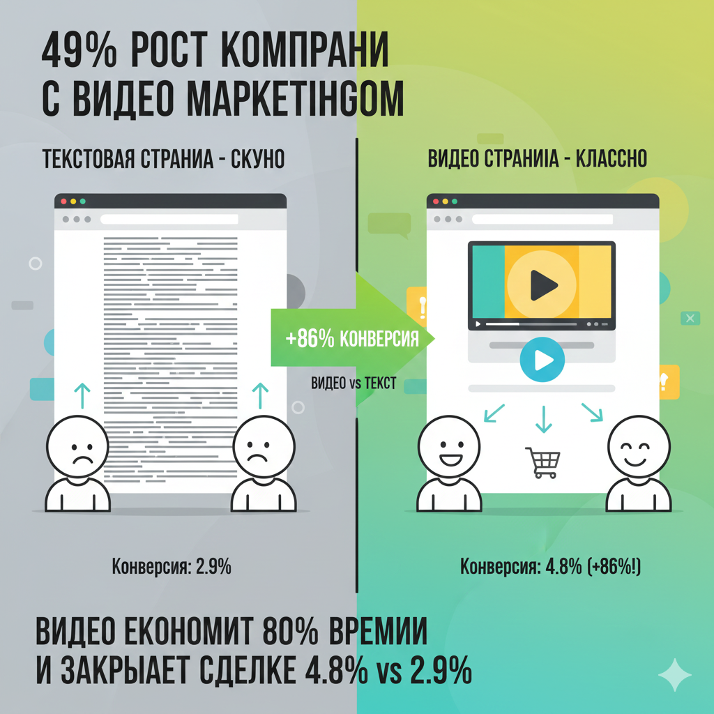 По данным The Desire Company (2025): видео маркетинг даёт конверсию 4.8% против 2.9% для текстовых страниц.