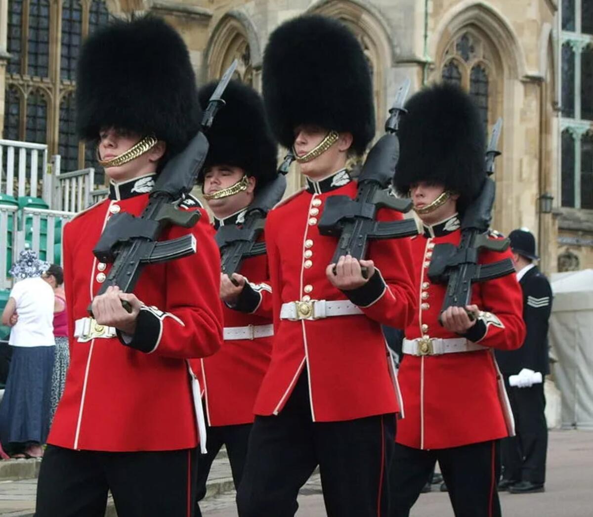 Поэтому сейчас эти шапки на голове у пяти полков пехотной гвардии британской армии — Grenadier, Coldstream, Scots, Irish, Welsh Guards. И это не просто «форменный прикол», а прямой исторический символ.