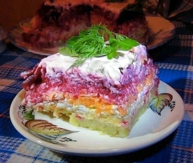 - Завершающим станет слой свеклы.