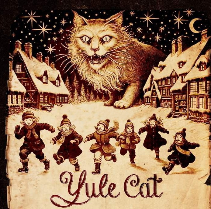 В некоторых случаях рождественский кот также связан с историей Грилы, легендарного чудовища из исландского фольклора, похожего на людоеда.