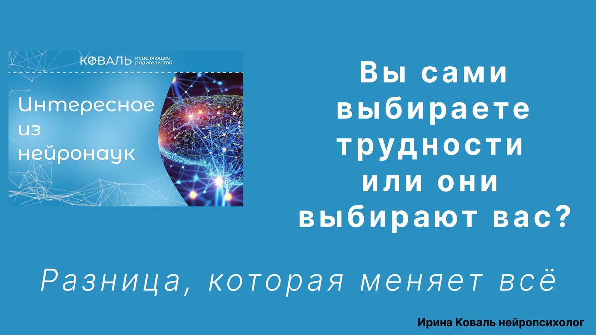 Современные исследования говорят, что наше благополучие зависит от ощущения контроля над своей жизнью. А теперь самое важное! ➡️Ощущение контроля связано не с общим количеством проблем и дел, а с соотношением тех вызовов, которые человек выбрал сам, и тех, в которых он оказался, не выбирая этого. Это как разница между тем, как вас заставили идти в гору, и тем, когда вы сами выбрали туда идти. Многое из того, что происходит в жизни, вы не выбираете. Это то, что приходит “извне” - аврал на работе, болезнь близкого, финансовые сложности. Вы в этой ситуации оказались. Но есть другая категория вызовов - те, которые вы выбрали осознанно и по своей воле: утренняя пауза для себя, учеба на курсе, включенное общение с детьми, трудный, но важный разговор, запланированная уборка, отказ от вредной привычки. Когда жизнь наполнена трудностями, которые вы не выбирали, мозг включает режим беспомощности, и вы чувствуете усталость, тревогу и выгорание. А когда ваша жизнь наполнена действиями, которые вы