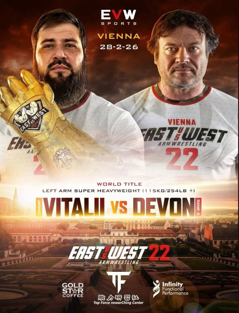 ⚠️ Официальный анонс поединка Виталий Лалетин vs Девон Ларратт | Левая рука, матч за титул сильнейшего в супертяжелом весе, 28 февраля, East vs West 22, Вена 🇦🇹 ✔️ Ну что же друзья, вчера Виталий Лалетин уже ложился спать, когда ему позвонили и сказали готовиться к стриму на котором будет сделано объявление касательно его поединка с Леваном. Как оказалось на стриме, Леван получил надрыв бицепса правой руки, и не сможет ближайшие месяца выступать на свою сильнейшую руку, подробности его травмы станут известны 29 декабря, когда он пройдёт МРТ и прочие обследования. Поэтому, так как что Ларратт, что Лалетин остались без соперников на февраль, они поборются между друг другом, но уже за титул Виталия на левой руке. Так же, матч Ларратта и Лалетина на правой в апреле никуда не отодвигается, и через 2 месяца после поединка на левой, они будут бороться ещё и на правой. Так что сейчас то уже никто никуда не убежит 😏 ❓ Кто же заберёт победу и уедет обратно с левой перчаткой East vs West?