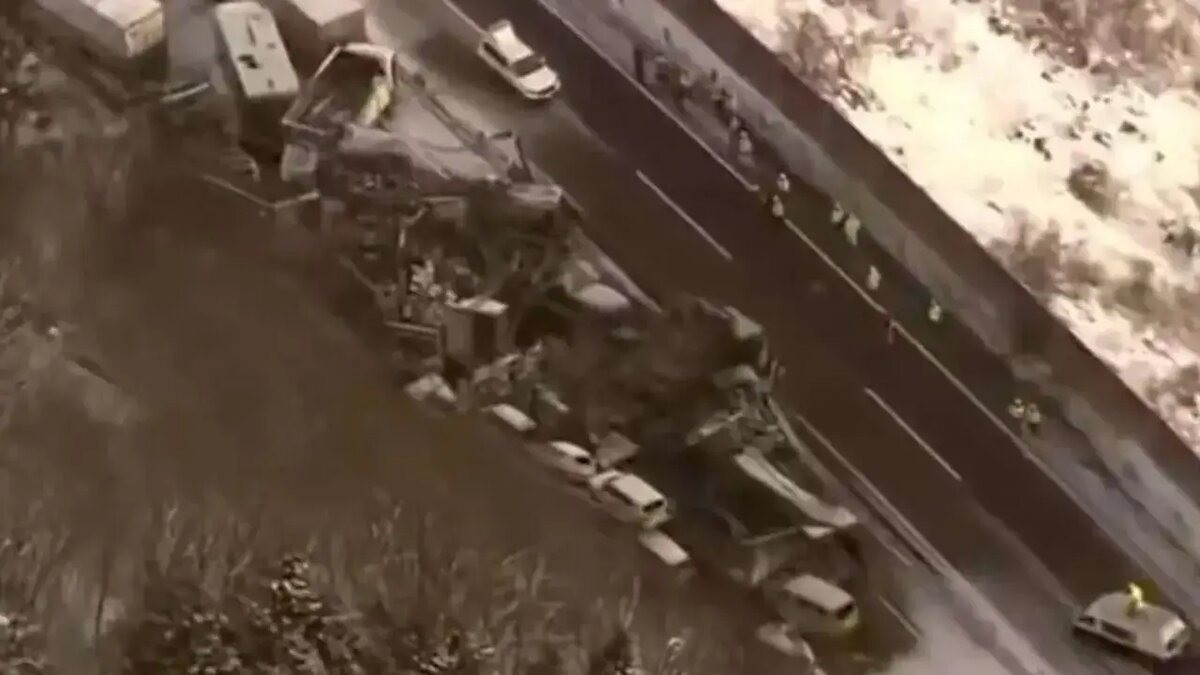 По сообщению местного телеканала NHK, авария произошла на скоростной автомагистрали. По предварительным данным, столкновение автомобилей произошло из-за образования ледяного покрытия на дороге.